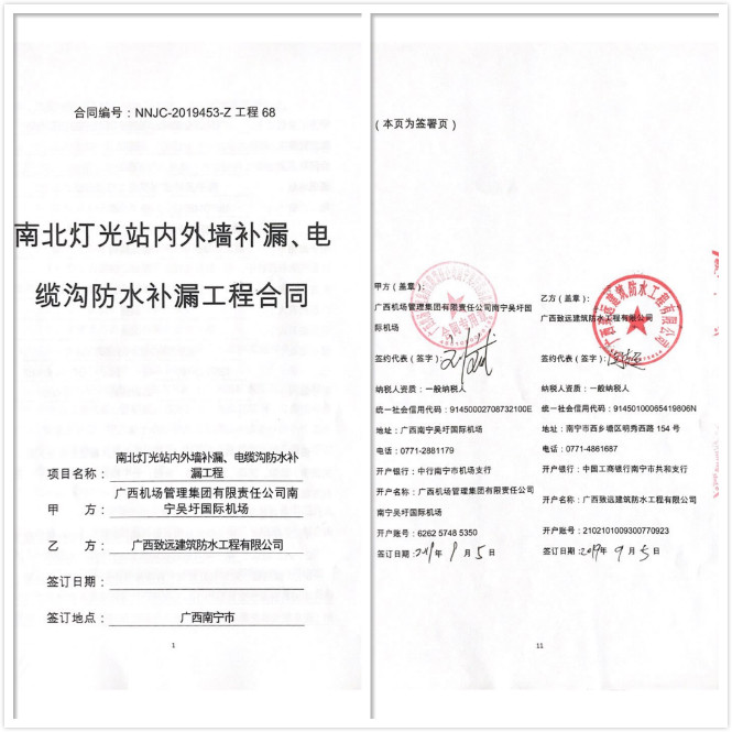 (南宁吴圩机场外墙防水施工合同复印件)